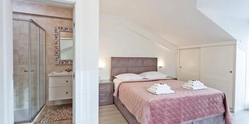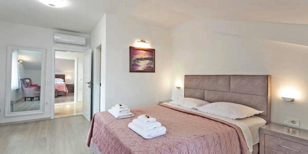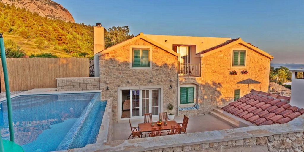 Dom składa się z dwóch przestronnych pokoi z prywatną łazienką w każdym pokoju. Mogą w nich spać 4 osoby, a w razie potrzeby można dostawić 1 dodatkowe łóżko dla jednej osoby. Wyposażony we wszystkie niezbędne sprzęty elektroniczne (zmywarka, pralka, TV w każdym pokoju, wifi), przestronną kuchnię, salon, a także grill zewnętrzny, gdzie możesz przygotować najpiękniejsze przysmaki ze świeżych ryb lub mięsa dla swoich bliskich. Dom posiada basen z plażą, gdzie można odpocząć od miejskiego zgiełku. Znajdują się tam również dwa duże tarasy z miejscami do siedzenia na dwóch piętrach, z których najwyższy oferuje widok na wyspy i morze, tak jakby trzymał je w dłoni. Dom oferuje również 2 zadaszone miejsca parkingowe. Obok domu znajduje się szlak przyrodniczy Parku Biokovo. Jedna z wielu ścieżek pr