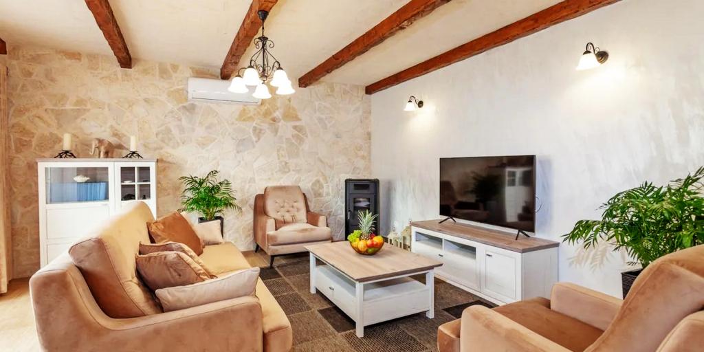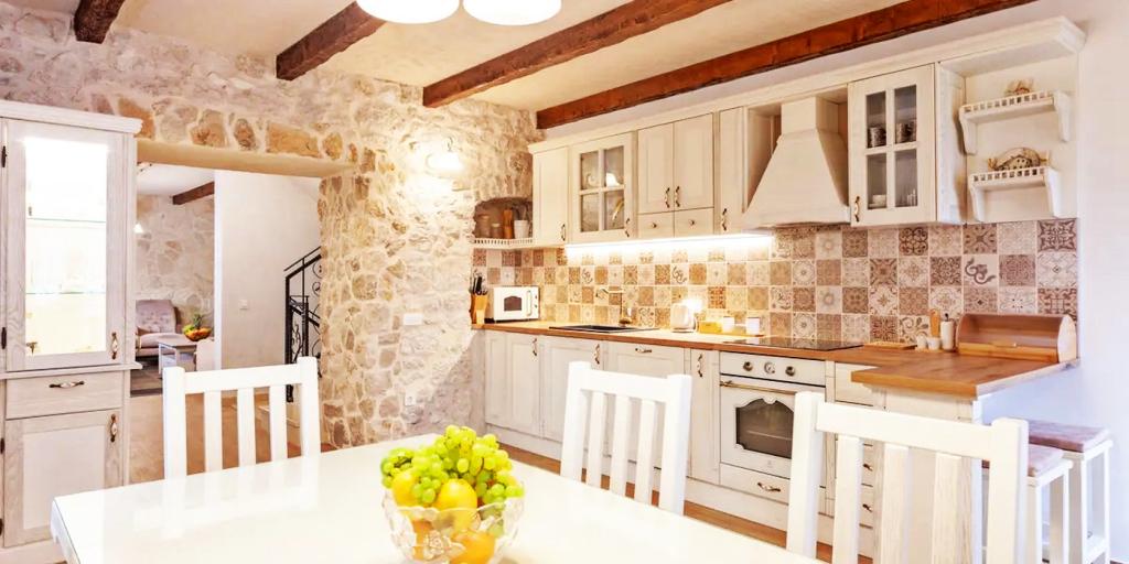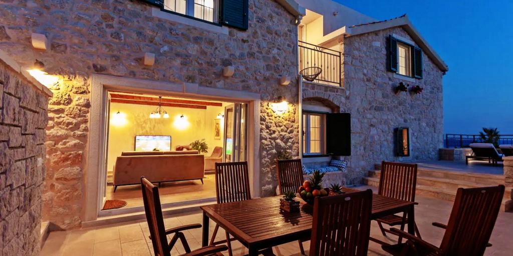 Spektakularna, ręcznie zbudowana willa położona w sercu natury, gdzie Twoja dusza i ciało znów się połączą. Dom położony jest w wiosce indiańskiej, na szczycie wzgórza, skąd roztaczają się wspaniałe widoki i panuje spokój. Część domu jest nadal oryginalna, a resztę zbudowano ręcznie z kamieni pochodzących z samej wioski. Włożono w to mnóstwo miłości, więc pobyt w nim, oprócz oferowanego luksusu, przyniesie Ci powiew dawnych czasów. Dom położony jest 5 km od miasta Makarska.