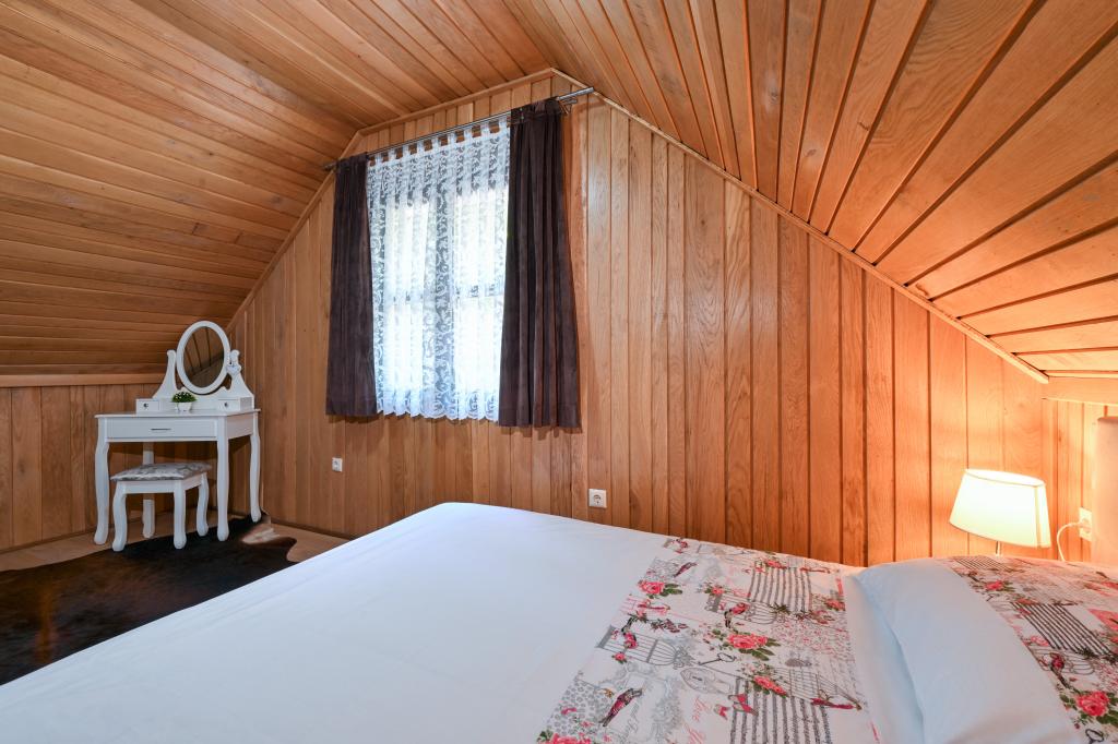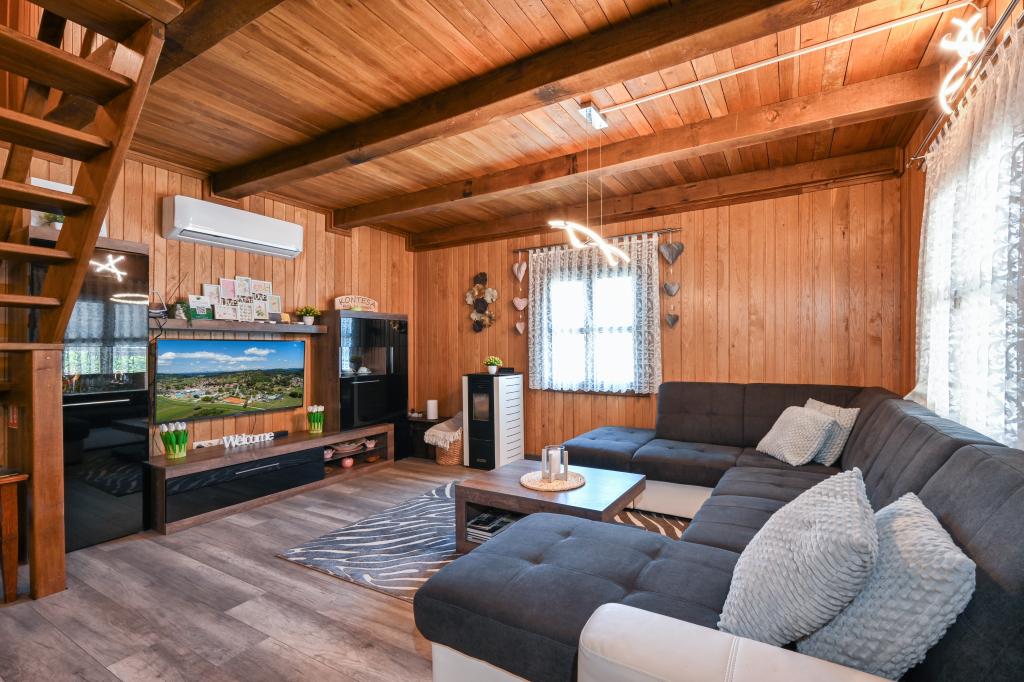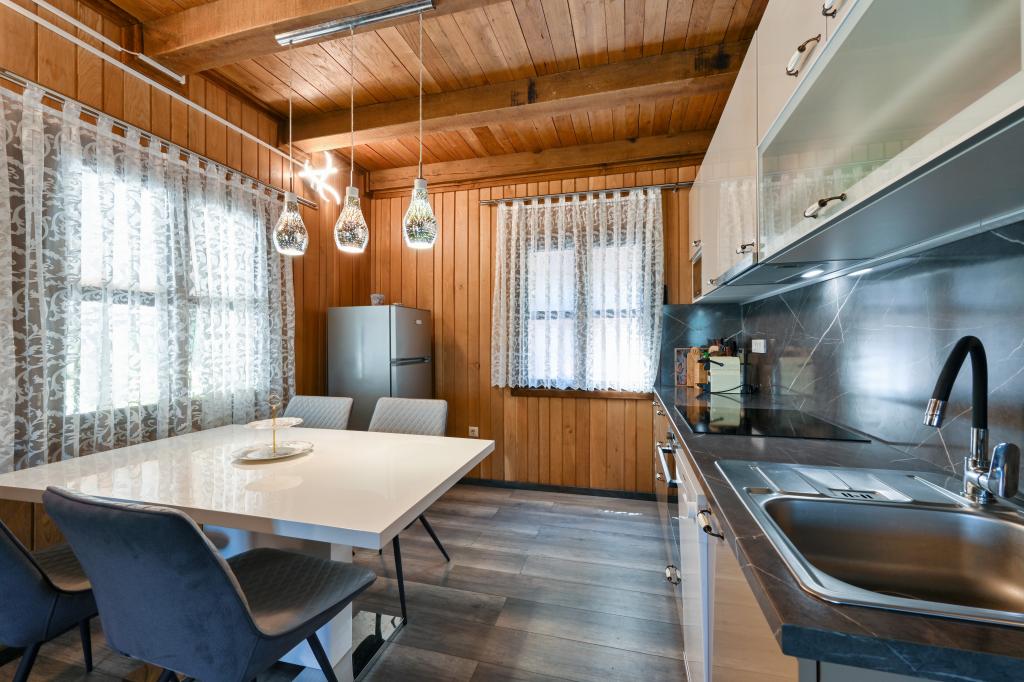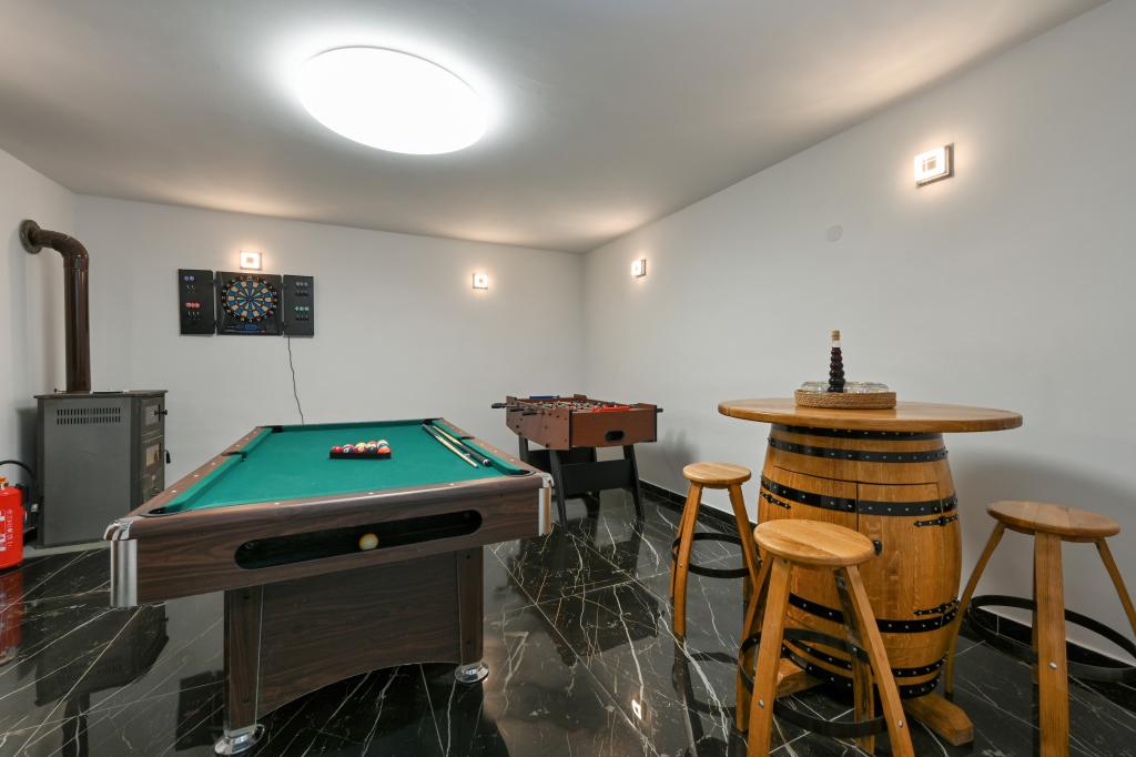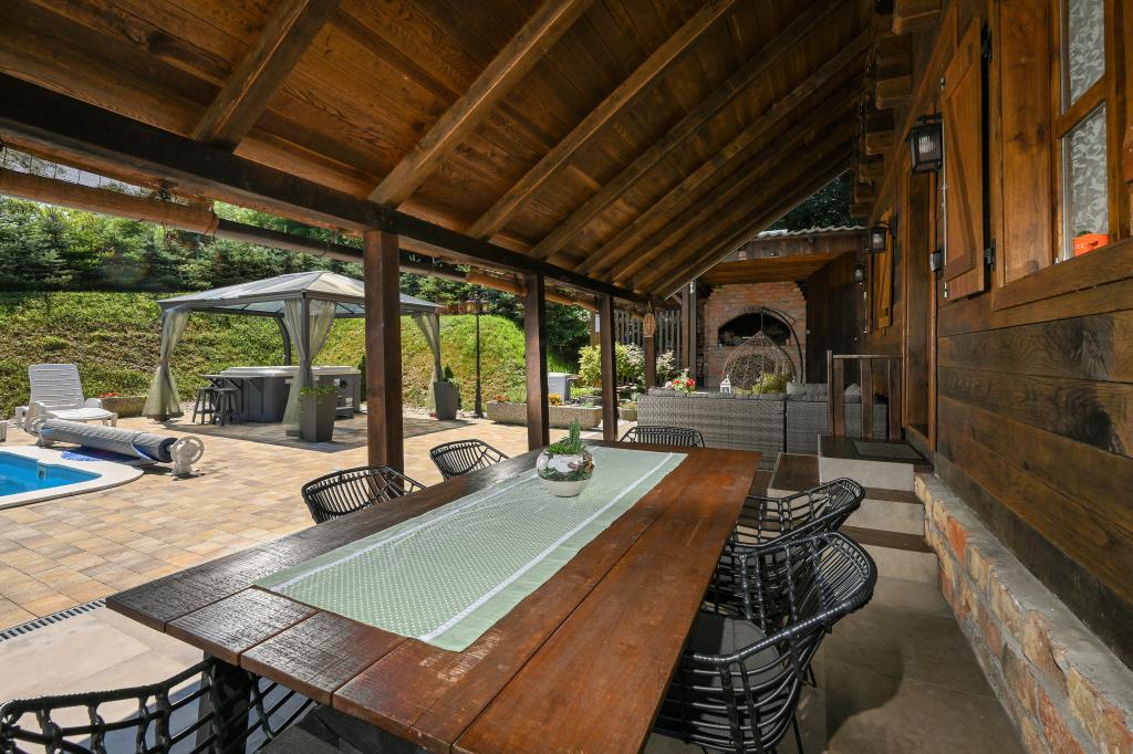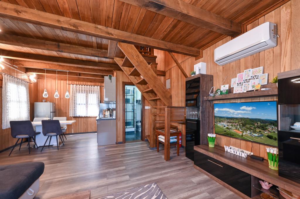 Jeśli chcesz sobie wyobrazić wakacje w najprawdziwszym tego słowa znaczeniu, położone na szczycie wzgórza, to idealnym miejscem, a jednocześnie ucieczką od zgiełku dnia codziennego, będzie dom wakacyjny Kontesa. Tutaj możesz całkowicie zostawić wszystko za sobą, oddać się tym, którzy cię uszczęśliwiają i cieszyć się dobrodziejstwami, jakie oferuje czysta przyroda i spokój regionu Zagorje. Ponieważ jedyne co będziesz mógł usłyszeć, to śpiew ptaków i szum wiatru w koronach drzew, a Twój wzrok będzie skierowany na otaczające Cię wzgórza, które zmieniają paletę barw w zależności od pory roku. Zatrzymamy Cię w czasie i damy Ci możliwość nawiązania kontaktu z rodziną, siedząc na przestronnym tarasie i pijąc poranną kawę lub czekając na zachód słońca i oglądając gwiazdy wieczorem. Zrelaksuj się na łonie natury w podgrzewanym basenie lub jacuzzi. Spotkaj się z dziećmi lub przyjaciółmi i zorganizujcie wspólnie grilla, zagrajcie w gry planszowe lub te dostępne w domu – możliwości jest wiele. A dom zrobiony z