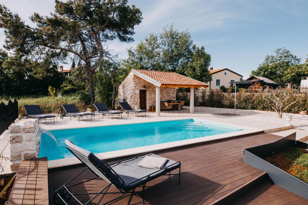 Autentyczna istryjska willa San Lorenzo w cichej istryjskiej wiosce Zakinji niedaleko Umagu oferuje całkowitą prywatność i spokojną ucieczkę od codziennego zgiełku. Spędź czas z rodziną, odkrywając i ciesząc się krajobrazem Istrii, zatrzymując się w willi z basenem, która może pomieścić do 6 osób. Willa rozciąga się na 2 piętrach i oferuje 3 komfortowe sypialnie z łazienkami. Parter Poczuj się jak w domu dzięki salonowi o niepowtarzalnym stylu. Jeśli zastanawiasz się, gdzie przygotować pyszne posiłki, nie martw się, przestronna kuchnia ma wszystko, czego potrzebujesz, aby Twoje przepisy stały się rzeczywistością. Przejdź przez drzwi, a znajdziesz się w pięknym ogrodzie. Można popływać o poranku w basenie lub wypić kawę na jednym z trzech tarasów. Po południu można odpocząć na leżakach, podczas gdy dzieci bawią się w całkowicie ogrodzonym ogrodzie. Możliwości jest wiele i decyzja należy do Ciebie. Koniecznie spróbujcie grilla, to obowiązkowy punkt na wakacjach.