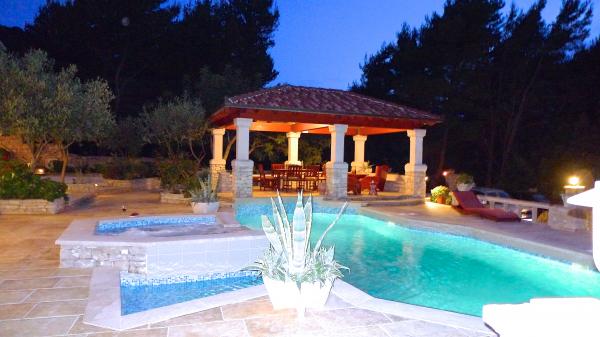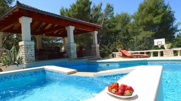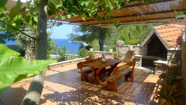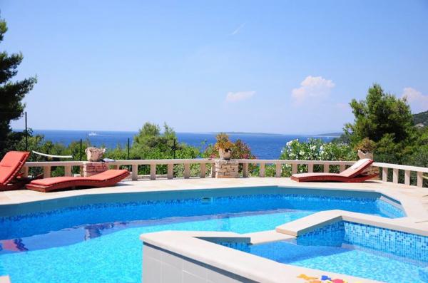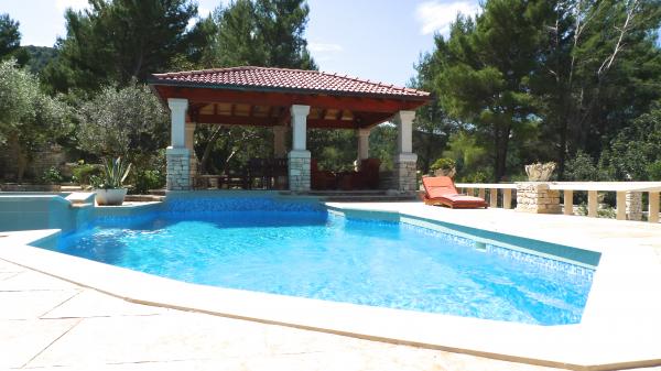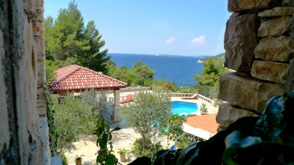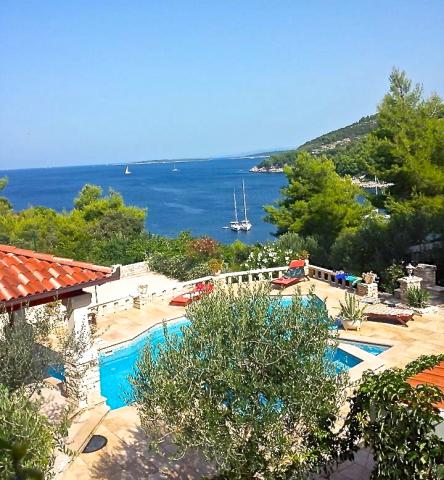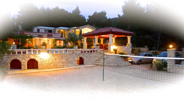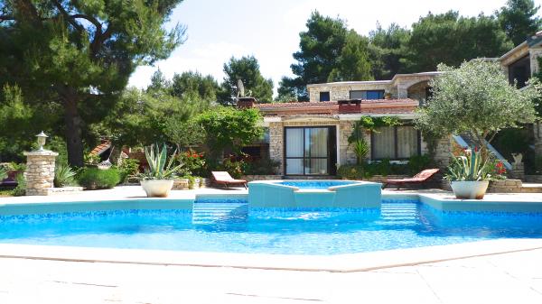 STONEHOUSE- Villa Poplat / Little paradise / Morze: 50 m. Od plaży: 80 m. Basen, sauna, jakyzi, boisko sportowe, parking, ogród, taras. Willa posiada 7 pokoi dla 14 osób. 4 pokoje dzienne z kanapami dla 4 osób. Maksymalne zakwaterowanie dla 19 osób. Jest 6 łazienki, 1 prysznic na zewnątrz, 4 kuchnia, otwarty obszar objęty dla towarzyskich, 4 grillowania, kryty grill 2. Całkowicie stylowy i wyposażony. Kamienny dom posiada jeden z najbardziej piękny ogród w Chorwacji. App. 1 = (2) / 2 App. 2 = (2) (2) / 1 App. 3 = (2) (2) / 1 App. 4 = (2) (2) / 1 Każdy apartament posiada oddzielne wejście z tarasem i wspólnym tarasie wokół basenu. Sauna, 2 jakyzi, grill, boisko sportowe, parking dla 4 samochodów na działce zamknięte, bezpłatnym dostępem do Internetu. Posiada: Basen: 10, 50 x 5, 10 m od jakyzi 2, 00 x 2, 00 m, woda morska. Miejsce dla romantycznej i cichym miejscu, 9 km od Vela Luka. Piękny widok na morze i zachód słońca.