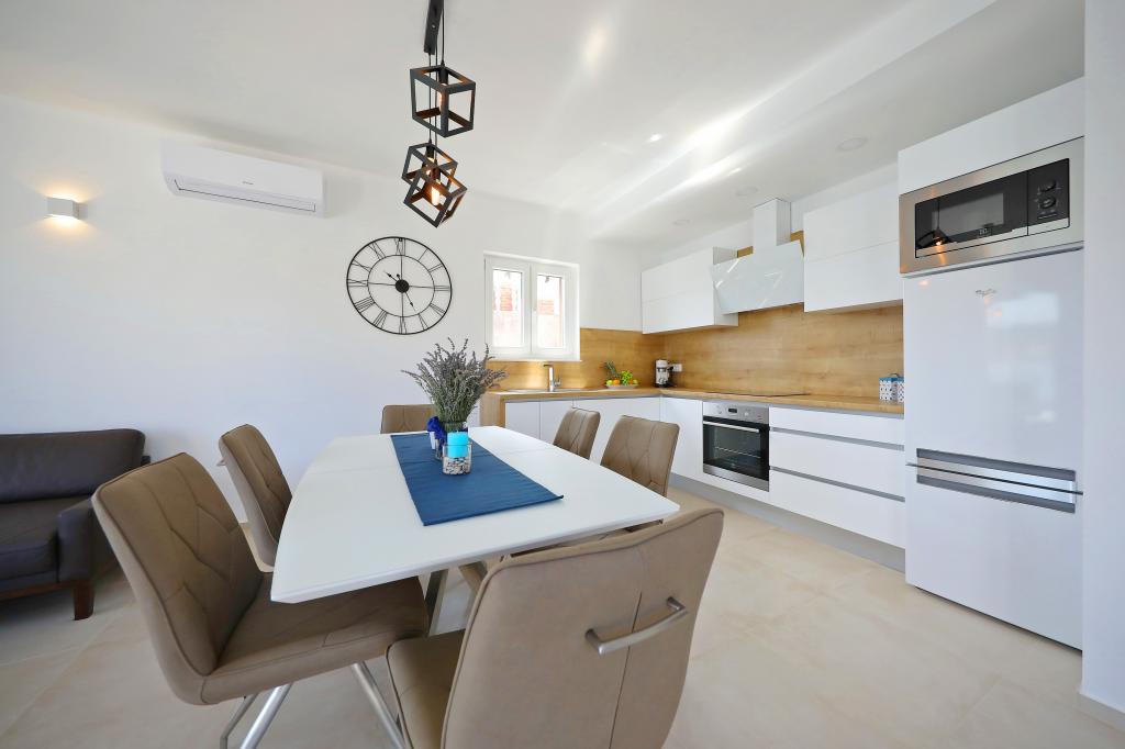 Zupełnie nowa, nowoczesna willa z basenem położona w zachodniej części Dugi otok, 3 km od plaży Sakarun i 3 km od latarni morskiej Veli Rat. Pula mierzy 6, 8x3, 2m. Bardzo wygodna willa z trzema sypialniami, trzema łazienkami, salonem, kuchnią, jadalnią, tarasem i grillem na świeżym powietrzu. Kompletna pościel, ręczniki kąpielowe, a zwłaszcza na plażę. Miejsce do cumowania łodzi do 6 m długości zabezpieczone 20 m od domu. W przypadku większych jednostek marina znajduje się 700 m od domu. Do dyspozycji jest 6 rowerów wraz z 1 SUP.