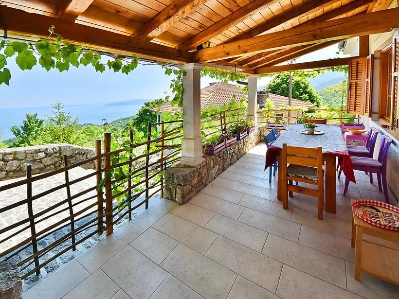 Rustykalny dom rodzinny w starej części Veprinac, w cichym, suchym miejscu na wzniesieniu, otoczony zielenią, w ślepej uliczce z pięknym panoramicznym widokiem na Kvarner. 8,5 km do morza i basenu (beton, żwir). Odległość do sklepu 550m.