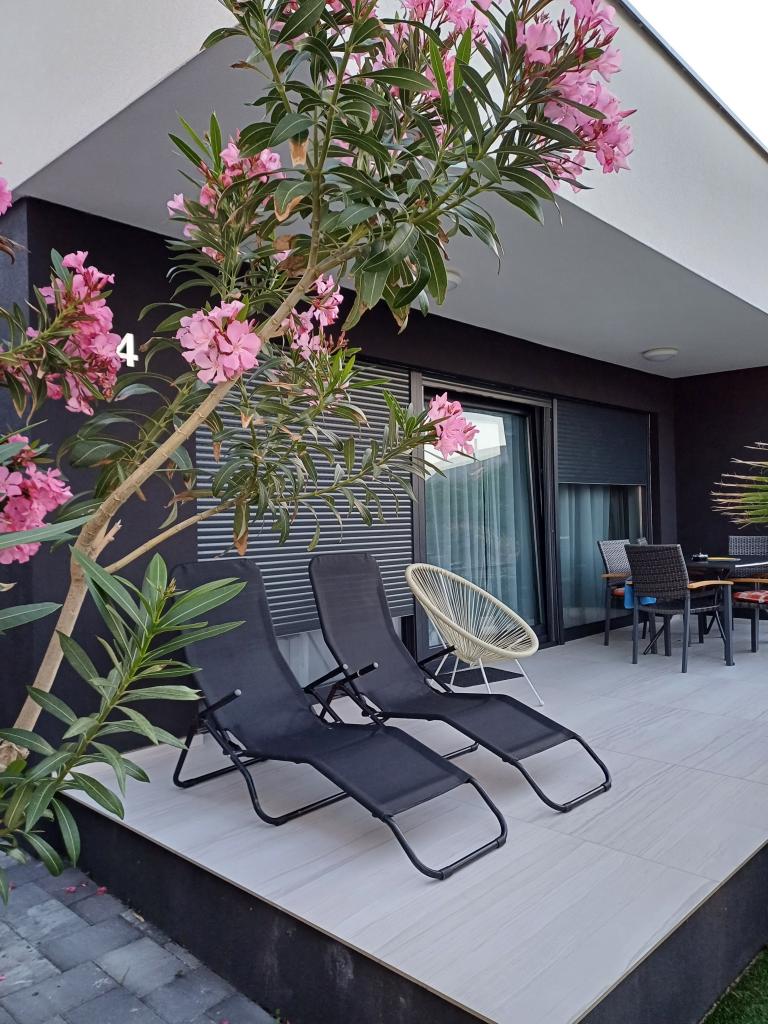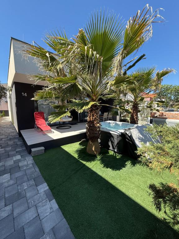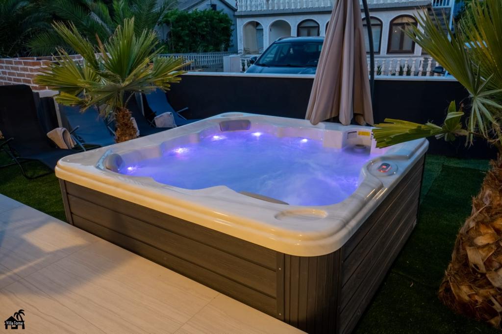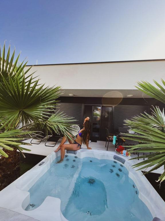 Dom jest nowo umeblowany, 100 m2 ma 3 sypialnie, 2 z łóżkami skrzyniowymi, trzeci pokój z dwoma oddzielnymi łóżkami, kuchnię ze wszystkimi urządzeniami, zmywarką, piekarnikiem, kuchenką, lodówką z zamrażarką, jedną łazienką i prysznicem na zewnątrz, jacuzzi w podwórko, parking strzeżony, 350m do morza, 350m do centrum, wszystkie obiekty są w bezpośrednim sąsiedztwie, wszystko można zwiedzić bez samochodu, sąsiedzi znajdują się w bezpośrednim sąsiedztwie, gość ma obowiązek przestrzegać regulaminu domu. Gospodarz nie mieszka w tym samym domu, gospodarz dba o jakość wody w jacuzzi