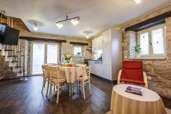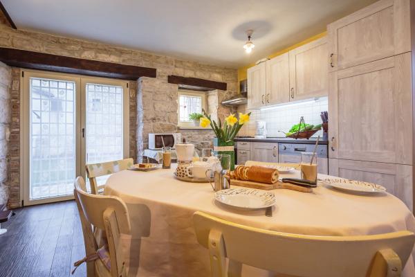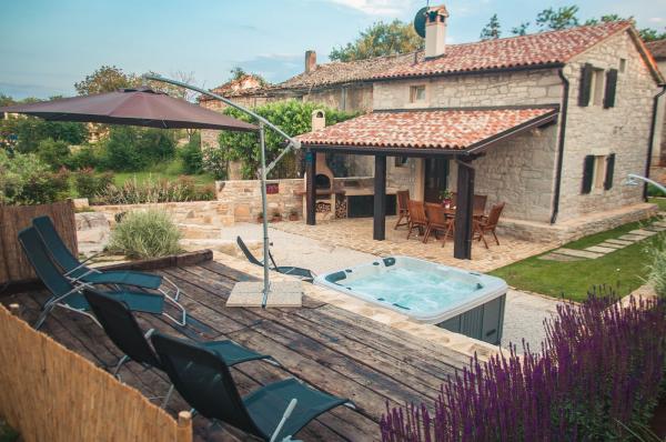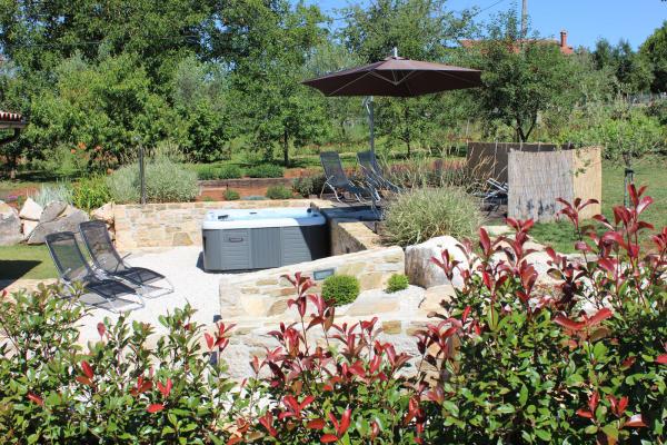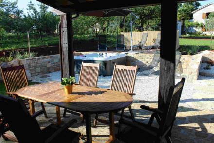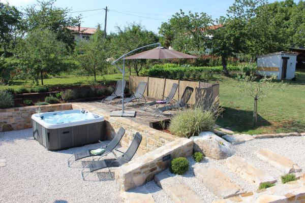 W pełni umeblowany dom z jacuzzi najbliższej Porec, 5 km od Visnjan. Oprócz jacuzzi cena obejmuje korzystanie z 4 rowery dla dorosłych, ale również dla dzieci od 4-8 lat. Ponadto istnieje również quad, a legendarny Renault 4-cie Poza oczekiwaniami i piękny duży taras z kuchni na zewnątrz i grillem i miejscem do opalania z wygodnymi drewnianymi krzesłami. Do Państwa dyspozycji jest ogród, gdzie sezon warzywa, takie jak pomidory, szpinak, marchew, kapusta, kapusta, pietruszka, sałata, radicchio, a także zioła, takie jak rozmaryn, szałwia, lawenda, liście laurowe ... ale z naszego sadu Bezpłatne można wykorzystać sezonowe owoce (czereśnie, śliwki, brzoskwinie). Pokoje gościnne (kuchnia, jadalnia i pokój dzienny z kominkiem) i WC znajduje się na parterze, a (2) sypialnie i łazienka na piętrze. Kuchnia jest w Poza standardowym wyposażeniem dodatkowo wyposażona w zmywarkę, lodówkę i zamrażarkę, kuchenkę mikrofalową, toster, blender, wstrząsnąć-ROM, kuchenka do kawy, czajnik.