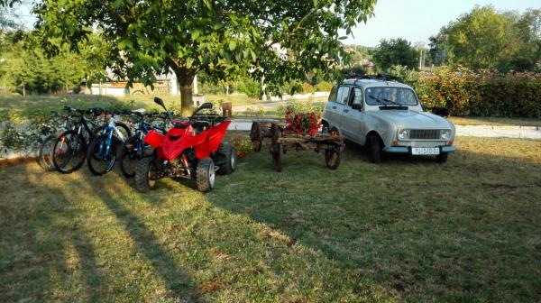 Opłata jest wliczone w cenę.Do napędu malowniczych ścieżek kraj Istrii, które są quad i legendarne Renault 4 (popularnie nazywane cztery). Można spodziewać się kilku niespodzianek i, w zależności od pory roku, jak sezonowe grzyby, owoce i warzywa z własnej produkcji ekologicznej, kasztany, szparagi, wina ... Jacuzzi na świeżym powietrzu z romantycznym lampek nocnych i przyjemnym widokiem na sad i ogród będzie zrelaksować ciało i umysł. Jest piękny meble ogrodowe drewniane pod dużym zadaszonym tarasem z kuchnią na zewnątrz, gdzie można przygotować smaczny posiłek do restauracji na świeżym powietrzu. Dzieci na pewno korzystać z trampoliny podczas relaksu w rustykalnej huśtawka. W chłodniejszych miesiącach kominku w kominku stworzy relaksujący romantyczną atmosferę.