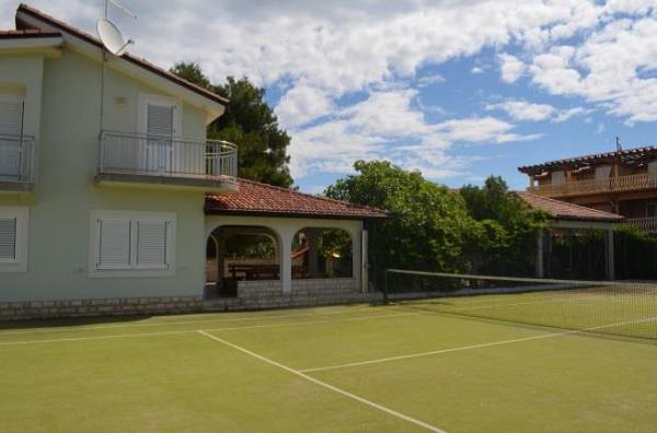 Zapraszamy do willi Melos! Idealne miejsce dla dużej rodziny lub grupy przyjaciół. Komfortowy apartament w Vodice, z prywatnym korcie tenisowym. Dom może pomieścić do 10 osób. Posiada 5 pokoi, 3 łazienki, kuchnia, salon i przestronny taras, gdzie można odpocząć i cieszyć się grill. Dom jest klimatyzowany. W budynku znajdują się trzy miejsca parkingowe, dwa na zadaszonym garażem.