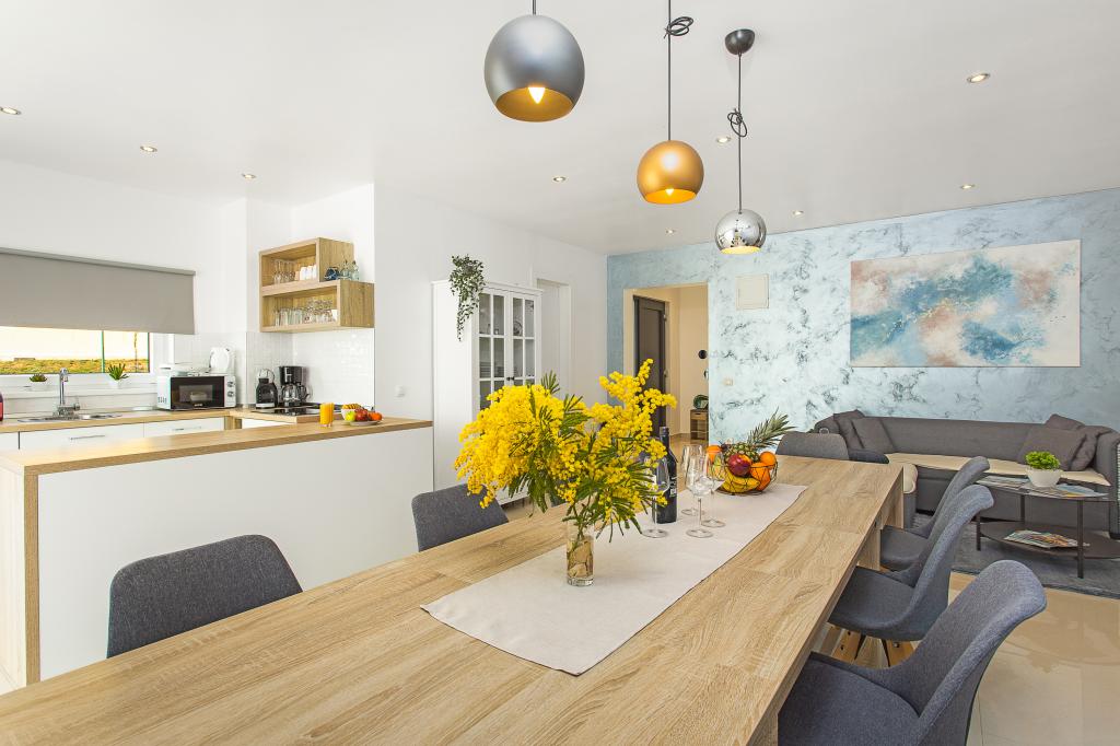 Nowo wybudowana, nowoczesna Villa Angie po prostu zachęca do spędzenia w niej relaksujących i niezapomnianych dni wakacji. Znakomicie wyposażony na ponad 250m² powierzchni użytkowej, z 5 sypialniami i 4 łazienkami, ogrodzonym podwórkiem o powierzchni 400m² pełnym śródziemnomorskich kwiatów, z basenem 9x4m, przestronnym miejscem do opalania z wystarczającą liczbą leżaków i parasoli, grillem gazowym i dodatkowymi elementami rozrywki wasze maluchy. Położona jest na skraju spokojnej wsi, otoczona łąkami i lasami, z licznymi szlakami pieszymi i rowerowymi przez zielony krajobraz.W bezpośrednim sąsiedztwie willi znajdują się boiska do uprawiania sportów. Dziesięć minut dzieli go od pierwszych plaż, a także słynnego kurortu turystycznego Fažana, który jest punktem wyjścia do zwiedzania Parku Narodowego Brijuni. Piętnaście minut jazdy dzieli Cię od lotniska i centrum turystycznego, miasta Pula ze słynnym rzymskim amfiteatrem Pula Arena. W bezpośrednim sąsiedztwie znajdują się liczne obiekty turystyczne, gastronomiczne, kulturalne i historyczne...