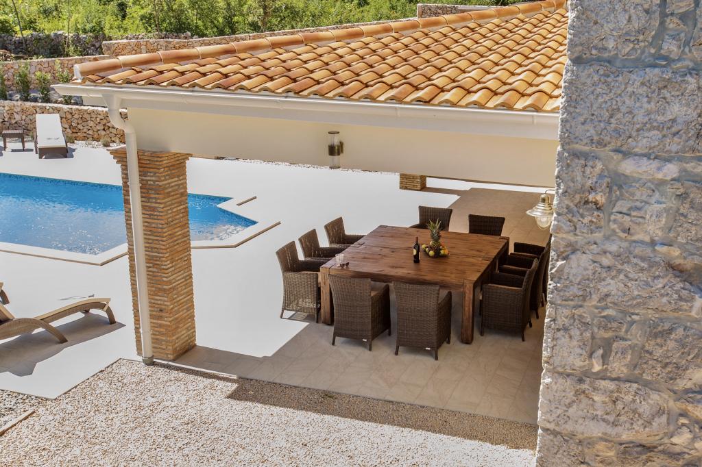 Villa Ibrahimović znajduje się w Garica na wyspie Krk. Willa ma cztery sypialnie, trzy podwójne i jeden pokój z dwoma pojedynczymi łóżkami. Każdy pokój ma własną łazienkę i klimatyzację. W części wspólnej znajduje się dodatkowe łóżko dla dwóch osób. Dom jest w pełni klimatyzowany i oferuje bezpłatne WiFi. Kuchnia jest w pełni wyposażona we wszystkie urządzenia. Przed willą znajduje się duży przestronny taras z grillem. Centralną część podwórka zajmuje basen (36 m2). Nieruchomość posiada parking na cztery samochody i plac zabaw dla dzieci. Willa znajduje się w spokojnej części wyspy Krk, w pobliżu Vrbnika, jednego z najbardziej znanych regionów winiarskich w Chorwacji, i jest idealnym wyborem dla wszystkich, którzy chcą uciec od stresu i codziennego życia.