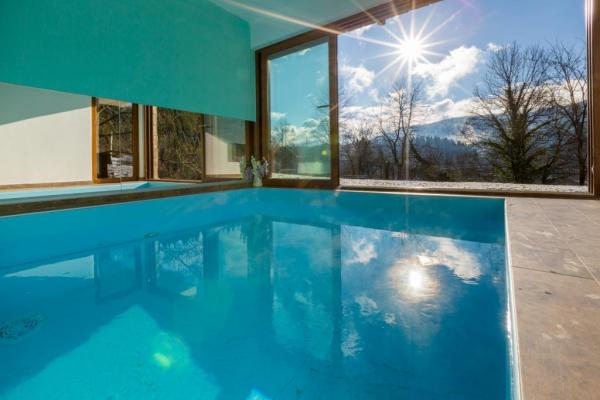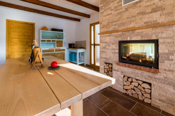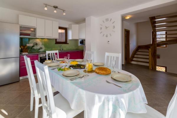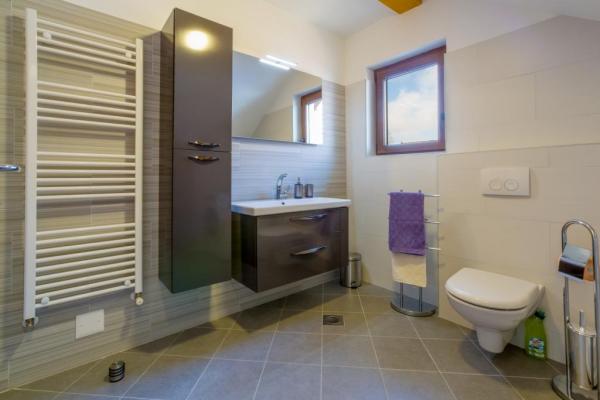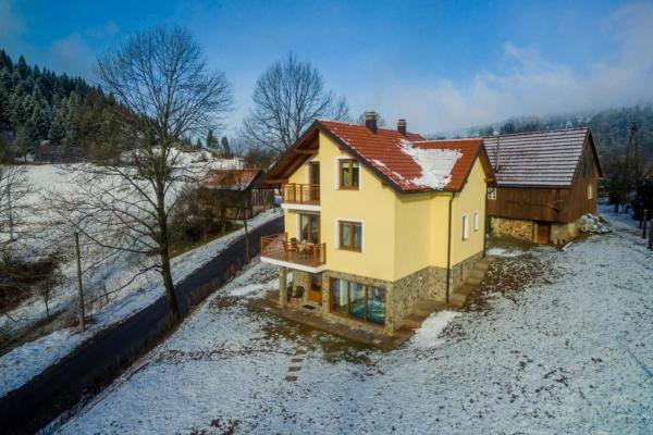 Nowo wybudowany wspaniały dom o powierzchni 180 m2 na trzech piętrach, dla maksymalnie 10 osób. Zbudowany na miejscu starego cienia, na działce o powierzchni 1200 m2. W piwnicy znajduje się piwnica (świetlica z przepięknymi meblami, z kominkiem na drewnie). Ponadto istnieje wymiar basenu wewnętrznego (300 x 260), sauna fińska do relaksu i prysznic. Pierwsze piętro jest zdominowane przez duży salon z kuchnią i jadalnią, salon z którego jest taras z widokiem na dolinę rzeki Dobre i okoliczne zielone wzgórza. Jest jeden pokój wyposażony w podwójne łóżko i łazienka z prysznicem. Na poddaszu są trzy sypialnie; jeden pokój wyposażony w dwa pojedyncze łóżka, jeden pokój z podwójnym łóżkiem (160 x 200), drugi z wysuwaną kanapą (160 x 200) Ponadto przestronne łazienki wyposażone są w prysznic i pralkę. Miejsce parkingowe, zielony i przestronny ogród z grillem i altaną do czerpania przyjemności z powietrza.