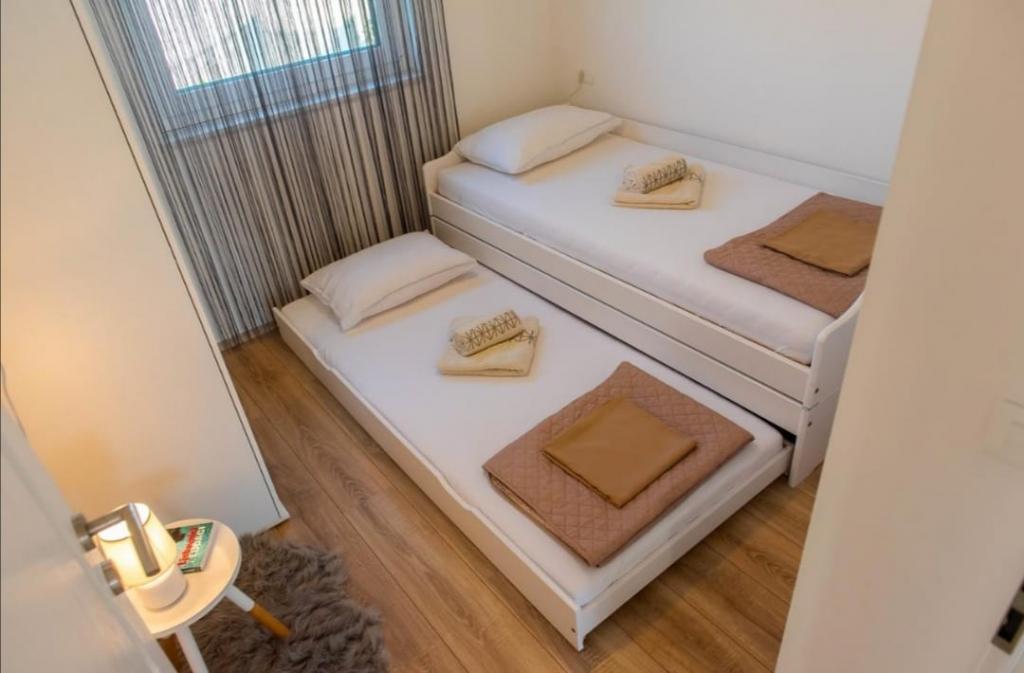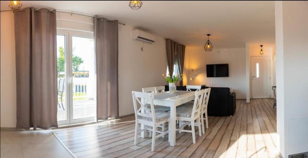 Dostępne od 23 sierpnia 2020 r Wszystkie warianty są możliwe po uzgodnieniu. Dom wakacyjny Aprilis znajduje się w wiosce Galovac, niedaleko Zadaru (15 km). Znajduje się na ogrodzonej działce z trawiastymi terenami i zapewnia intymność. Posiada ogród, salon, miejsce na ognisko (grill), plac zabaw dla dzieci, trampolina) oraz basen z innymi udogodnieniami do użytku (basen jest dzielony z jednym apartamentem) Dom posiada własną drogę i prywatny parking na 2-3 samochody. Dom składa się z dwóch sypialni (pokój dwuosobowy i pokój dziecięcy, który można przekształcić w pokój dwuosobowy), łazienkę, toaletę, kuchnię, salon oraz duży taras z widokiem na plac zabaw i basen. Dom posiada wszystkie niezbędne sprzęty AGD (klimatyzacja, wifi, pralka, zmywarka, żelazko, mikrofalówka, ekspres do kawy ...). Cena obejmuje dwa ręczniki na osobę oraz komplet pościeli, która jest zmieniana co 7 dni. Wakacje w naszym domu pozwalają w miesiącach letnich odpocząć od stresu i miejskiego zgiełku. Jest idealny na rodzinne wakacje