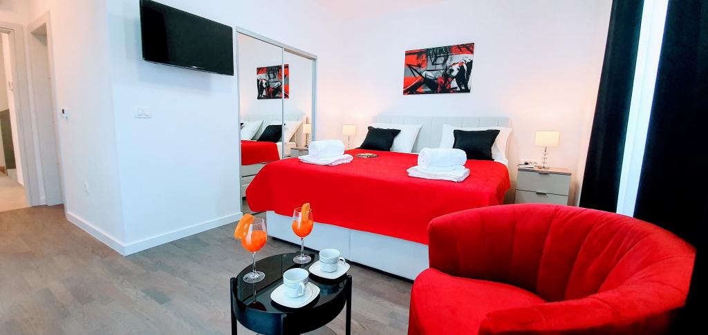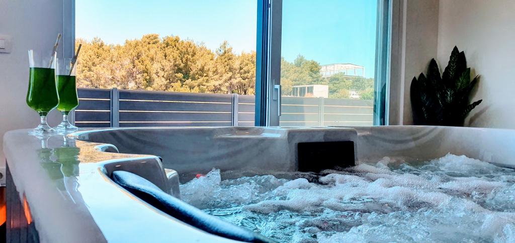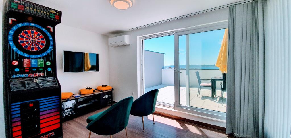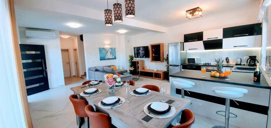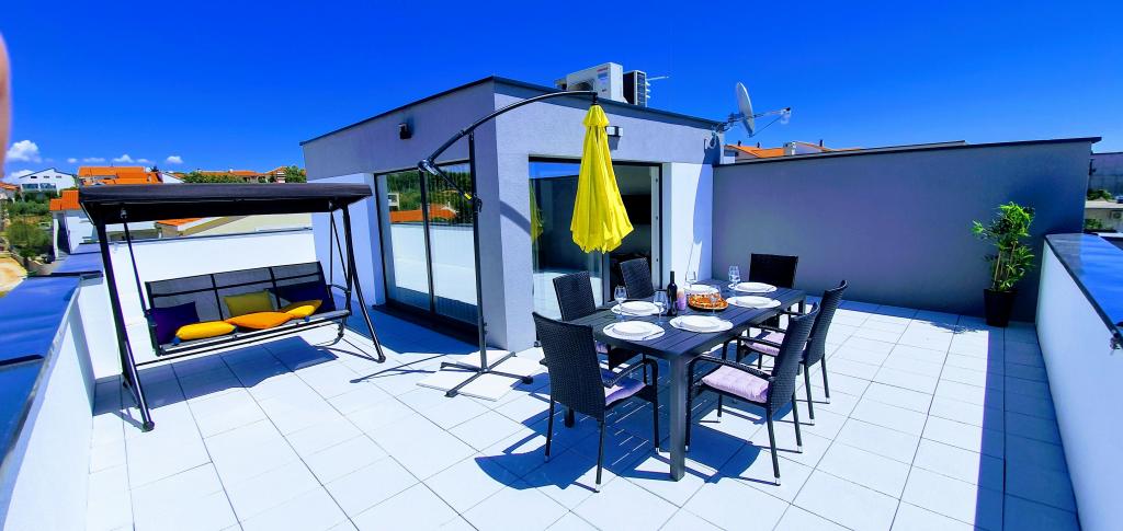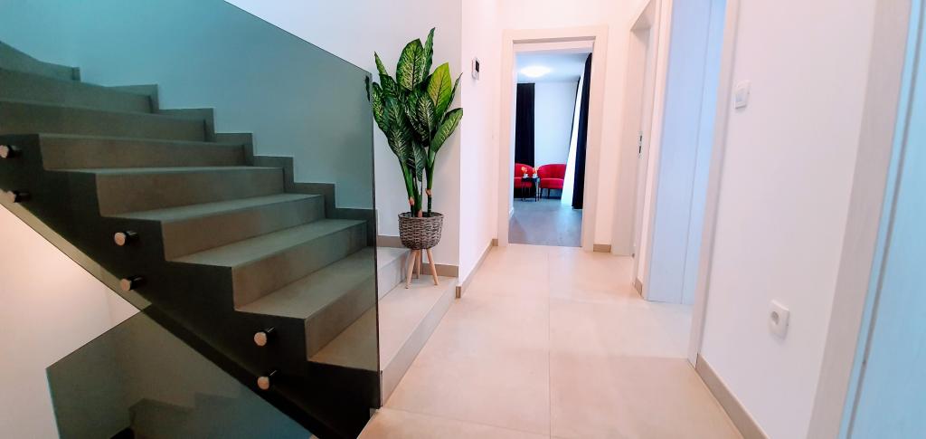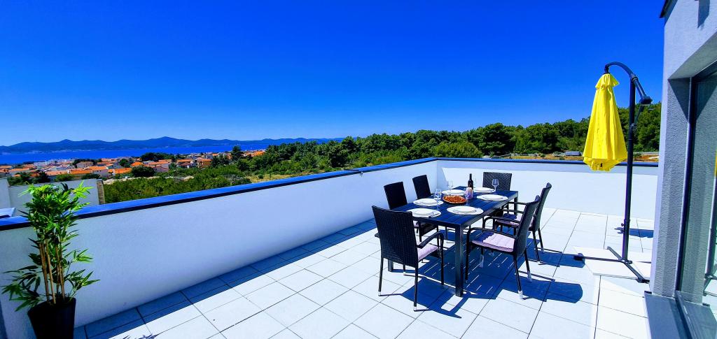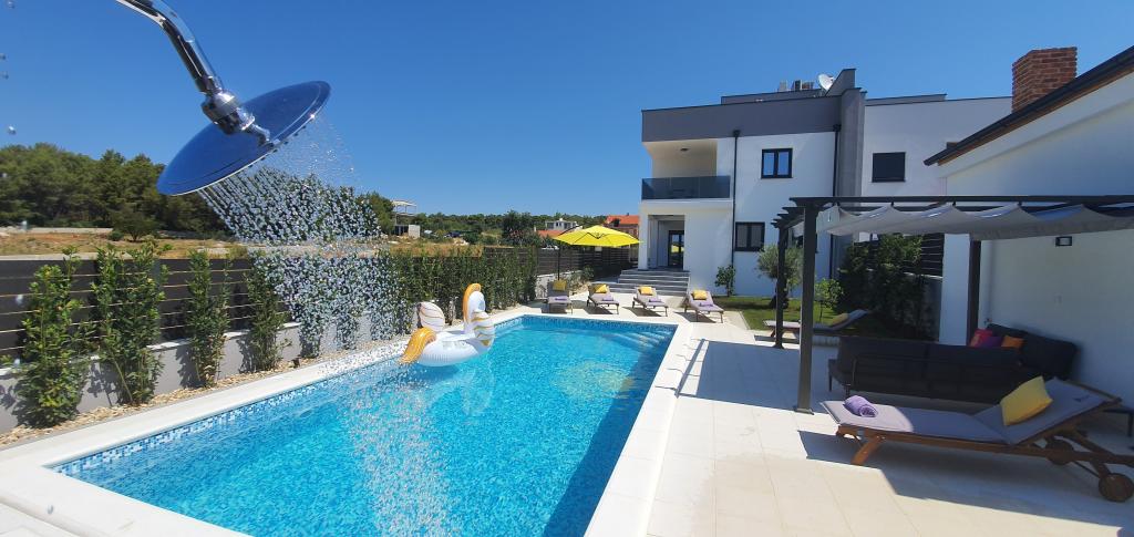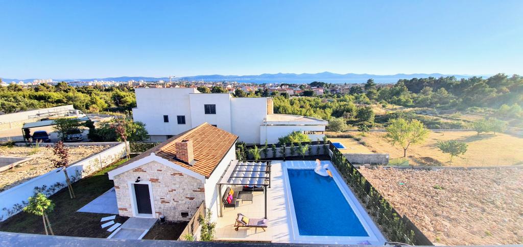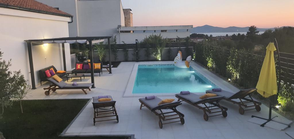 Nowa, niedawno ukończona willa, nowocześnie urządzona zapewni Państwu niezapomniane i doskonałe wakacje w Zadarze. Willa z panoramicznym widokiem na Stare Miasto znajduje się w Zadarze w spokojnej okolicy, zaledwie kilka minut jazdy samochodem od Starego Miasta, gdzie codziennie odbywają się różne imprezy, a także liczne restauracje z doskonałą ofertą gastronomiczną, a także szereg zabytków. Willa składa się z piwnicy z siłownią i karczmą, parteru z salonem z wyposażoną kuchnią, toaletą z pralką oraz pokojem SPA z jacuzzi i prysznicem z hydromasażem. Na pierwszym piętrze znajdują się 4 pokoje, z których 3 mają wspólną dużą toaletę, a jeden pokój ma własną toaletę i balkon z pięknym widokiem na morze i odkryty basen. Na drugim piętrze jest panoramiczny widok na Zadar i morze, a także pokój wyposażony w konsolę do gier i rzutki. Przed Willą znajduje się piękny duży basen o wymiarach 9x4, a także taras i leżaki. Podczas pobytu w Zadarze zdecydowanie polecamy tę piękną willę.