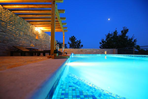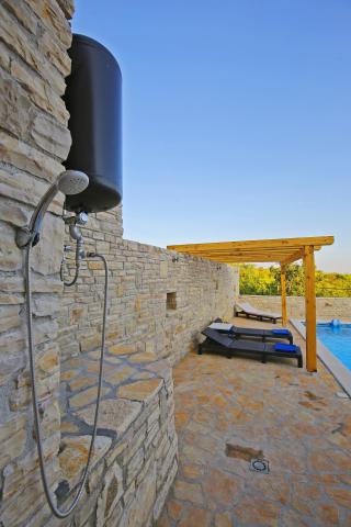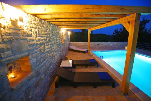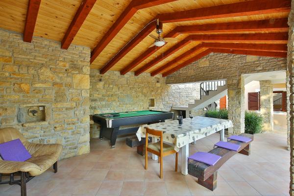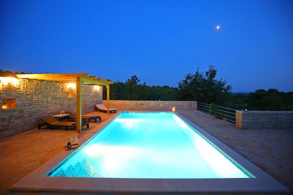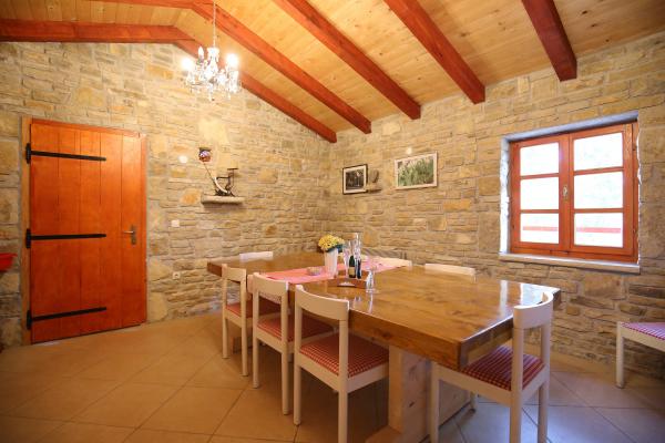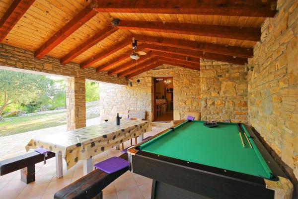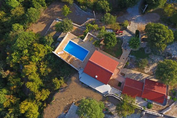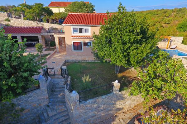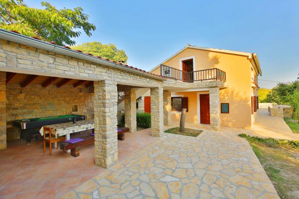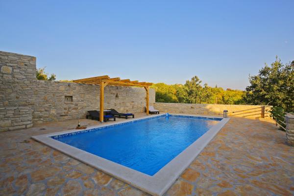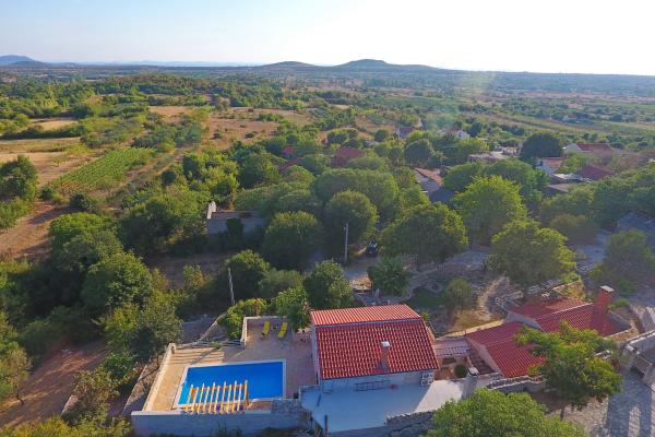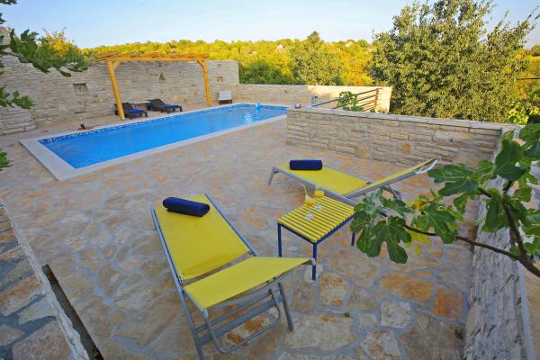 W pełni umeblowana willa z basenem na zapleczu Zadaru, Ravni okręgi, znane ze swego kraju chrzcielnej, silnego kamienia i nadzwyczajne wina. Villa rozciąga się posiadaniem 3000 m2, który jest całkowicie ogrodzony z tradycyjnym w kamieniu. Również, jako część willi jest tradycyjna tawerna, również zbudowany z kamienia, wielkości 35 m2, z kominkiem, w pełni wyposażona kuchnia i masywny drewniany stół dla 12 osób. Poza kominkiem, istnieje również dostępne i ognisko na dziedzińcu willi. Sam dom jest na dwóch piętrach, wyposażone w standardzie, nowoczesne meble, z dwoma pokojami i łazienką, żyjących i czterech sypialni, w której znajdują się masywne łóżka wykonane z dębów. Teren oferuje szereg opcji, ale goście mogą korzystać z odkrytego basenu 8 x 5 metrów ze słonecznym tarasem, dwa duże (kamienia i drewna) z tabeli z naturalnym cieniu starych drzew, małej siłowni mobilnej, stół bilardowy, a także rowery, które są wolne w użyciu.