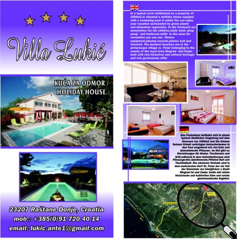 Na ziemi 1200m2 znajduje się dom wakacyjny, gdzie można spędzić wakacje pływanie w basenie domu znajduje się 6 sypialni 4 łazienki. Zewnątrz zawierać treści przeznaczonych dla dzieci, grill, tenis stołowy, podczas gdy w świetlicy są urządzeniami fitness. Najbliższe plaże znajdują się zaledwie kilka minut w malowniczej miejscowości St. Peter