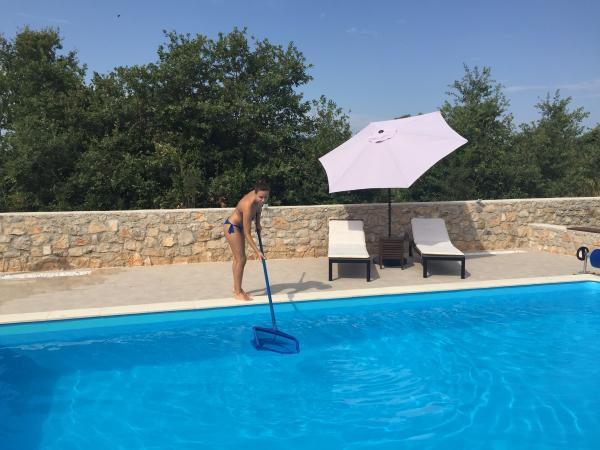 W pełni wyposażony i nowoczesny apartament w spokojnej, wiejskiej okolicy, aby pomieścić max. 8 osób. Nadaje się dla dwóch rodzin lub grup przyjaciół. Od Zadar 13 km lub dziesięć minut. jazdy i 6 km od morza (Sukosan). Dom składa się z dwóch pięter z pełnym wyposażeniem, ogród 1400 metrów znajduje się odkryty basen wymiarach 8x4x1, 5 z tarasem, plac zabaw, grill ogrodowy, parking dla 3 samochodów. Wszystko Zelna spokojne i przyjemne wakacje są mile widziane