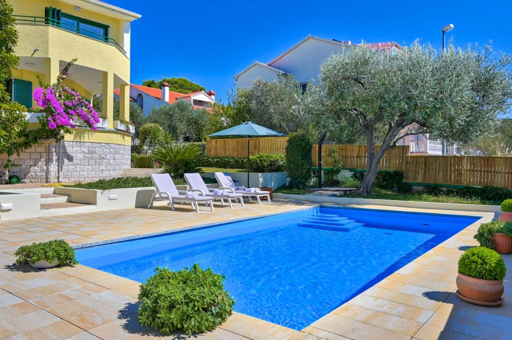 W pełni wyposażona willa z basenem, leżakami i parasolami, blisko plaż Borik, Diklo, Uskok i Puntamika (10 min pieszo) oraz centrum miasta (5-10 min samochodem). Z tarasu na szczycie willi rozpościera się wspaniały widok na centrum miasta i dzwonnicę św. Stošija, morze, wyspy i nasi goście mogą podziwiać piękny zachód słońca. Dom składa się z parteru, pierwszego piętra, tarasu powyżej, sali gier (tenis stołowy, piłkarzyki, rzutki, bieżnia, TV), miejsca na zewnątrz do squasha, mini piłki nożnej, boksu, badmintona. Wszystkie pokoje w domu i pokoje posiadają balkon. Willa oferuje do 5 bezpłatnych miejsc parkingowych + garaż. Jeśli masz dodatkowe pytania, skontaktuj się ze mną pod podanymi kontaktami lub za pośrednictwem poczty e-mail. Czekamy na Twoje zapytania!
