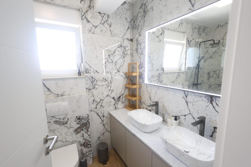 Witamy w Villi Amara, nowocześnie urządzonym domu wakacyjnym położonym w malowniczej miejscowości Zaton, niedaleko Zadaru. Ta elegancka willa z prywatnym basenem idealnie nadaje się na spokojny i relaksujący wypoczynek z rodziną lub przyjaciółmi, z dala od miejskiego zgiełku, a jednocześnie w pobliżu wszystkich niezbędnych udogodnień. Willa rozpościera się na dwóch piętrach i oferuje przestronny salon, w pełni wyposażoną kuchnię, komfortowe sypialnie z wyjściem na balkon oraz nowoczesne łazienki. Duże, przeszklone ściany łączą wnętrze z tarasem i basenem, tworząc idealną przestrzeń do relaksu na słońcu. Na dziedzińcu znajduje się prywatny basen, leżaki, grill, a także zadaszony taras ze stołem jadalnym. Do dyspozycji Gości jest bezpłatne Wi-Fi, klimatyzacja we wszystkich pokojach, telewizor Smart TV i prywatny parking. Plaże i krystalicznie czyste morze znajdują się zaledwie kilka minut jazdy samochodem, podobnie jak słynne miejsca takie jak Nin, Zadar i parki narodowe. Poczuj spokój, komfort i elegancję Dalmacji – zarezerwuj Villi Amara już dziś!