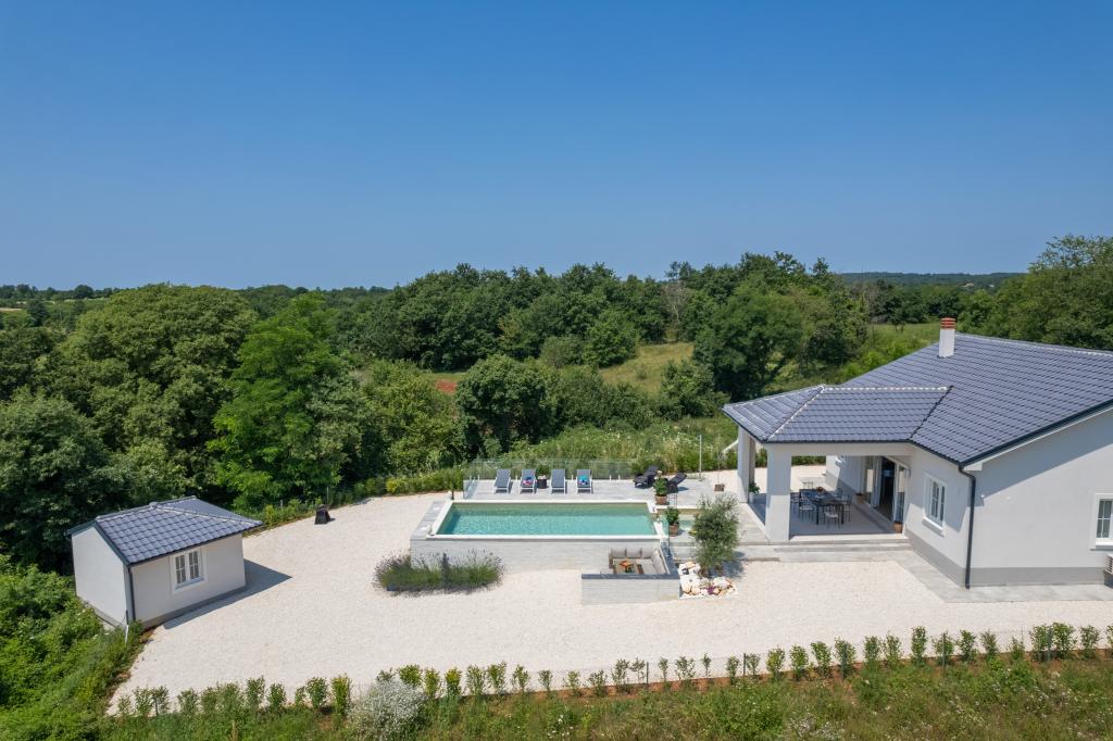 Villa Sienna znajduje się w Žminj (środkowa Istria). Całkowita wielkość willi wynosi 130 m2 dla maksymalnie 4 osób. Istnieje również w pełni wyposażona kuchnia ze zmywarką, pralką, lodówką z zamrażarką, ekspresem do kawy, piekarnikiem, kuchenką mikrofalową. W salonie znajduje się również smart TV, klimatyzacja oraz rozkładana sofa o całkowitych wymiarach 160 x 200 cm. Posiada dwie sypialnie. W każdej sypialni znajduje się podwójne łóżko o wymiarach 160 x 200 cm. inteligentny telewizor i klimatyzację. Posiada 2 łazienki z prysznicem, toaletą i umywalką. Podwórko o powierzchni 1000 m2 jest całkowicie ogrodzone. Do dyspozycji gości są także 2 miejsca parkingowe. Przed domem znajduje się w pełni zadaszony taras z basenem o wymiarach 8 x 4 metry, jacuzzi, prysznicem na świeżym powietrzu, grillem, leżakami. Dom położony jest 2,5 km od sklepu, restauracji, siłowni, apteki. Pierwsza plaża znajduje się około 20 km od Villi Sienna.